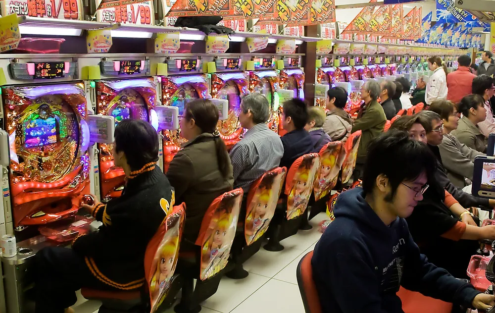 “The flowing motion of the balls and the shared mood inside the hall make pachinko feel more social than a typical arcade.”